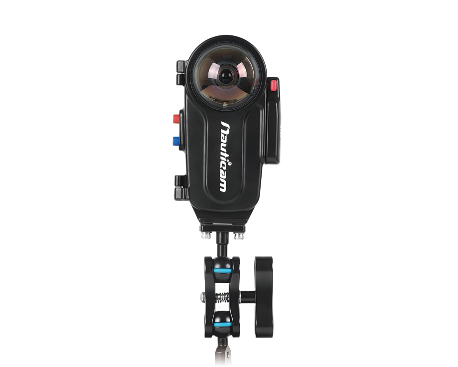 壳体底部配备标准 1/4 英制螺丝孔,可选配标志性的碳纤铝管190g 浮力手杆,既能稳固连接运动相机与防水壳,又可灵活适配防水壳额外提供M5 孔位与1/4 孔位安装,轻松拓展多样拍摄玩法。